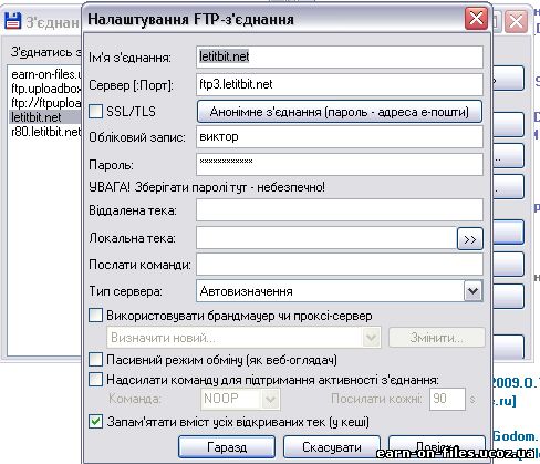 у некоторых файлобменников ник и/или пароль от учетной записи могут отличатся от ника и пароля к ftp серверу